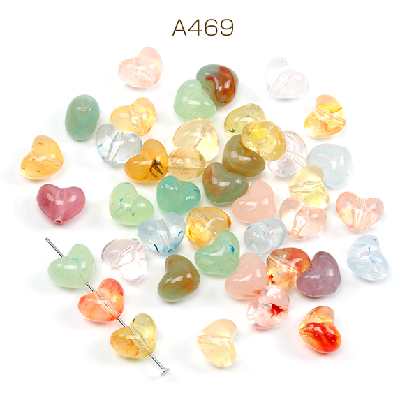 アクリルビーズ ハート カラーミックス 穴あり 約10×13mm(ランダム30ヶ)
