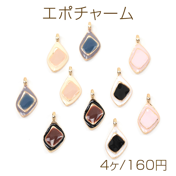 エポチャーム 合金製 幾何学 ひし形 菱形 レトロモダン バイカラー メタルチャーム 約7×14mm(4ヶ)
