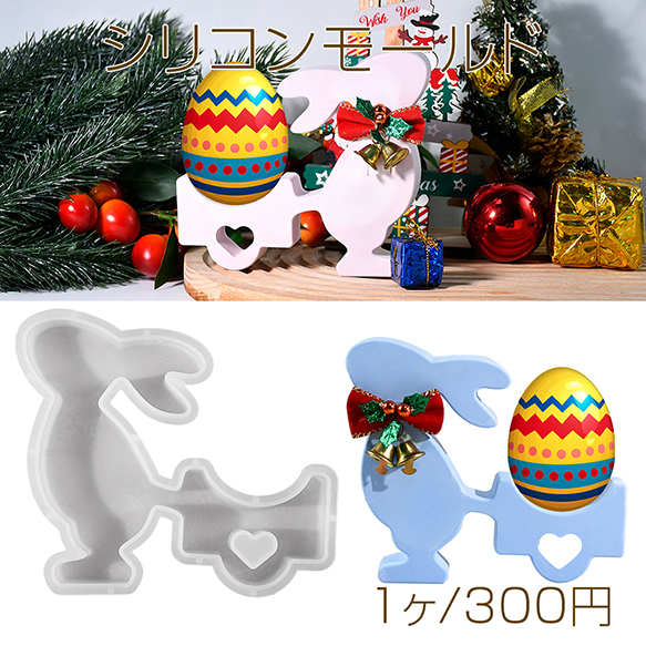 シリコンモールド レジンシリコンモールド ウサギが引くカート イースターエッグ(1ヶ)