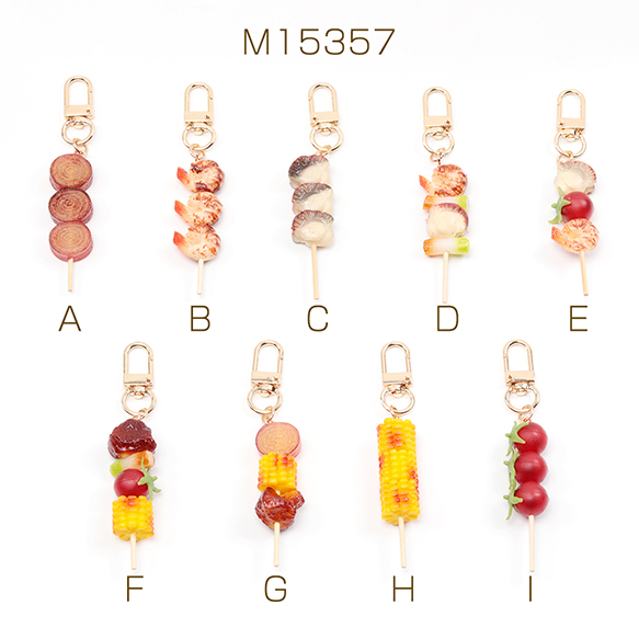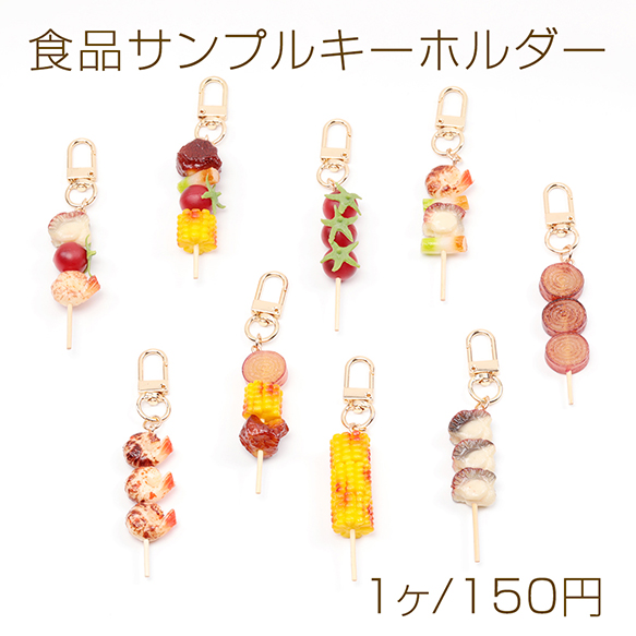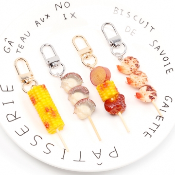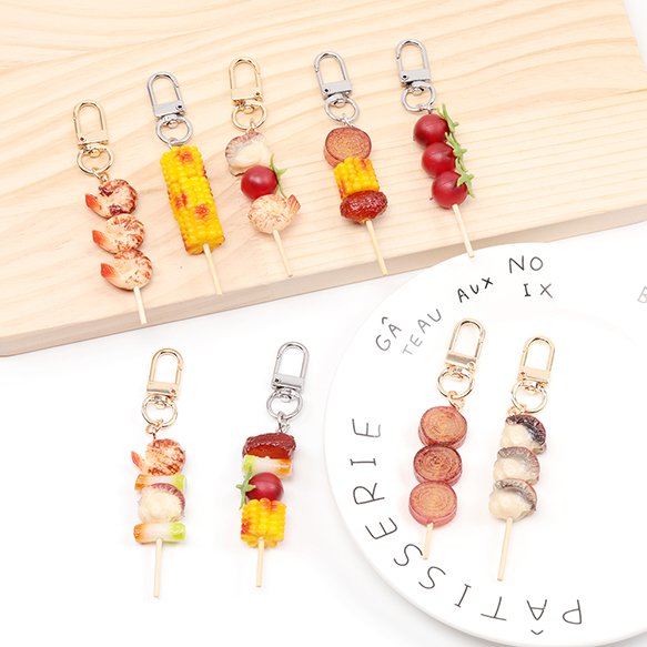 食品サンプルキーホルダー 串焼き 焼き鳥 海鮮焼き 夏祭り ミニチュアフード 回転カン付き 約1.8×10cm(1ヶ)