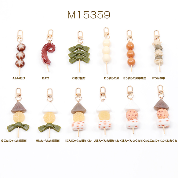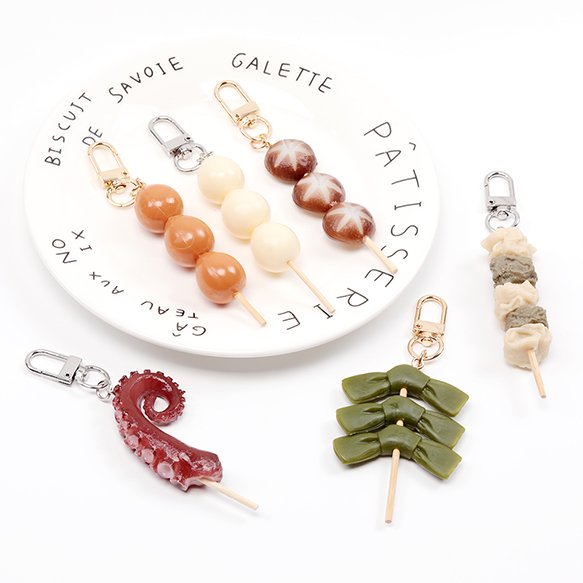 食品サンプルキーホルダー おでんキーホルダー 椎茸 タコ足 結び昆布 うずら卵 食品さんぷる 約2.1×12.4cm(1ヶ)