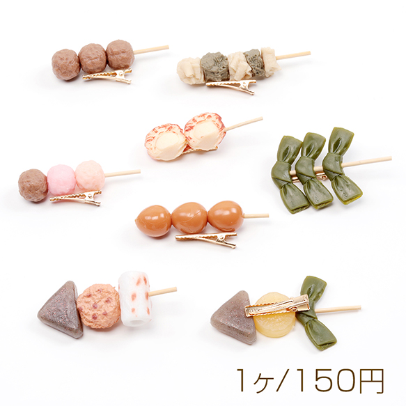 食品サンプルヘアクリップ おでん 団子 うずら卵 おでん串ヘアアクセサリー コスプレヘア飾り 約1.8×7cm(1ヶ)