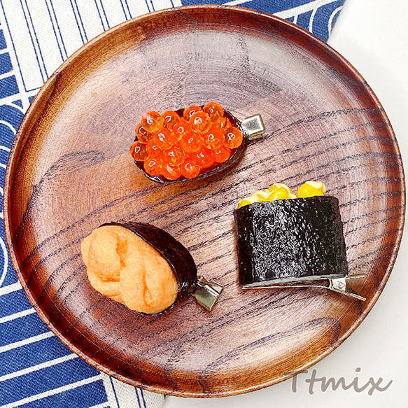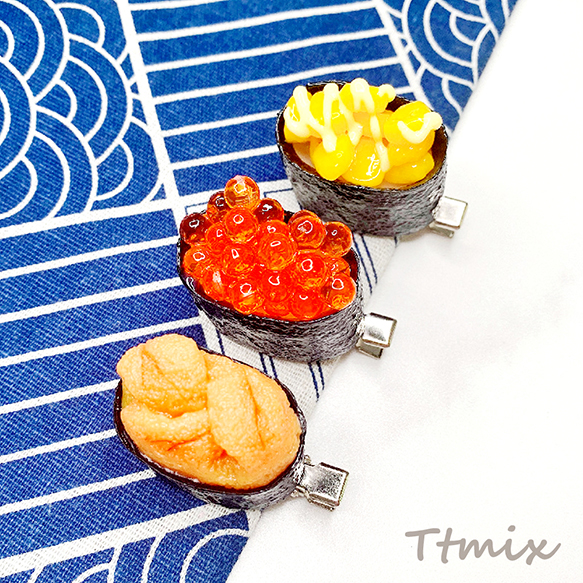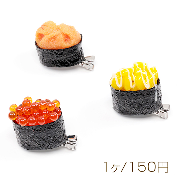 食品サンプルヘアクリップ お寿司 軍艦巻き いくら コーンマヨ うに ユニーク髪飾り コスプレ 約3.5×3.9cm(1ヶ)