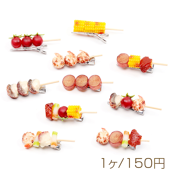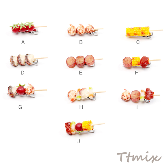 食品サンプルヘアクリップ 串焼き バーベキュー 野菜焼き 海鮮焼き コスプレ ユニークな髪飾り 約1.8×6cm(1ヶ)
