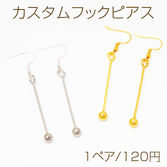 カスタムフックピアス ビーズ通しスティック付き カスタムビーズ オリジナルピアス ピアス金具 約0.12×6.8cm(1ペア)