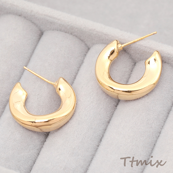 ファッションピアス オープンフープピアス ピアス ハーフリングピアス スタイリッシュ メタルピアス 約6×21mm(1ペア)
