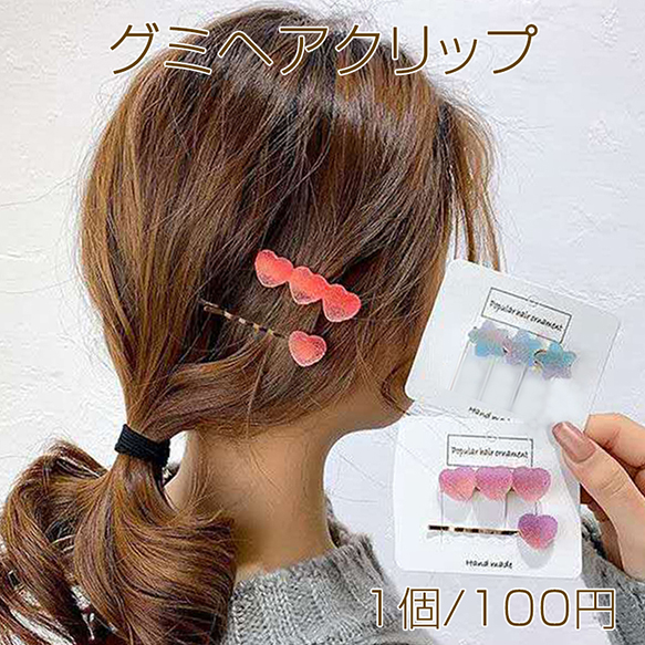 グミヘアクリップ ぐみ キャンディ 星 スター ハート 前髪クリップ サイドクリップ へアピン ヘア留め (1個)