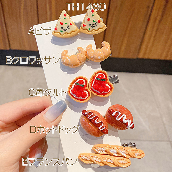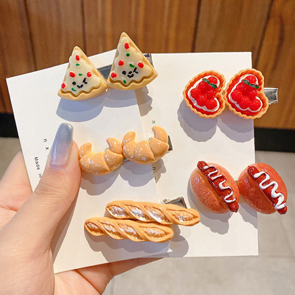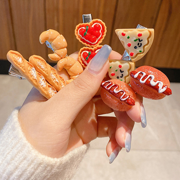ヘアクリップ 食品サンプルヘアクリップ ピザ クロワッサン 苺タルト ホットドッグ フランスパン 前髪クリップ (1ヶ)