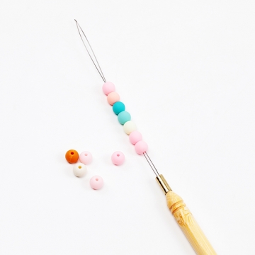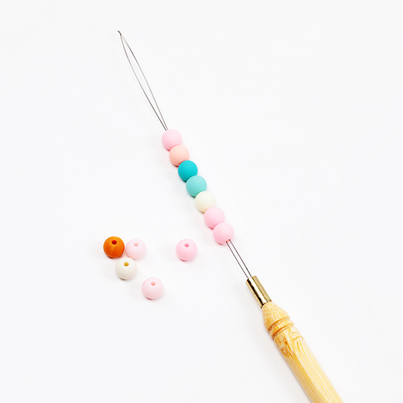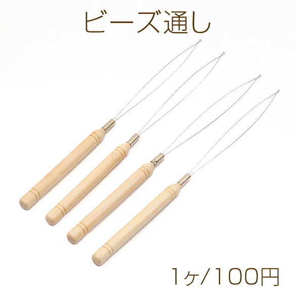 ビーズ通し 糸通し 手軽にビーズ制作 一気に通して作業効率アップ 錆びにくいステンレス製 持ち手木製 長さ約23cm(1ヶ)