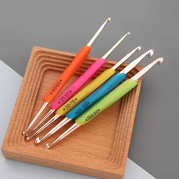 かぎ針 カラフル 両かぎ針 5本セット 毛糸 レース編み 編み物 編み針 手作り マフラー 手袋 長さ約13.5cm(1ヶ)