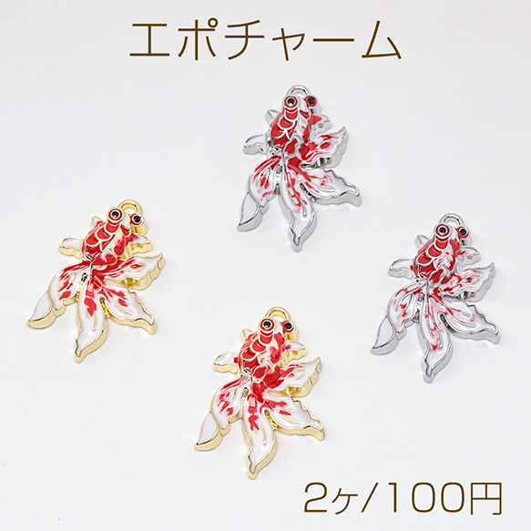 エポチャーム きんぎょ 金魚 夏 優雅 涼しげ 風流 金魚チャーム メタルチャーム 約18×26mm(2ヶ)