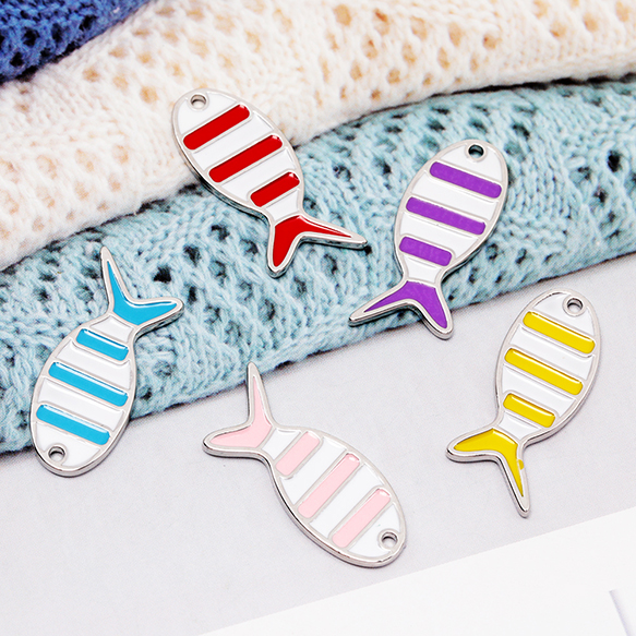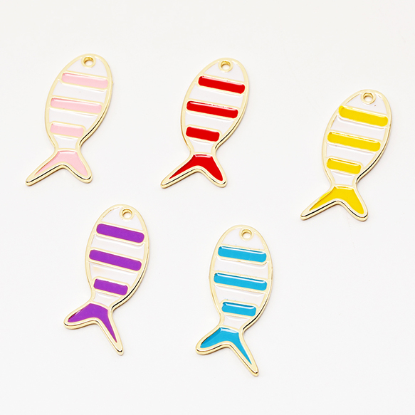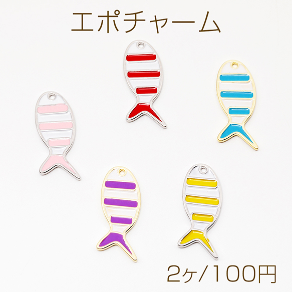エポチャーム ストライプ 縞々 さかな 熱帯魚 マリンチャーム メタルチャーム 約12×29mm(2ヶ)