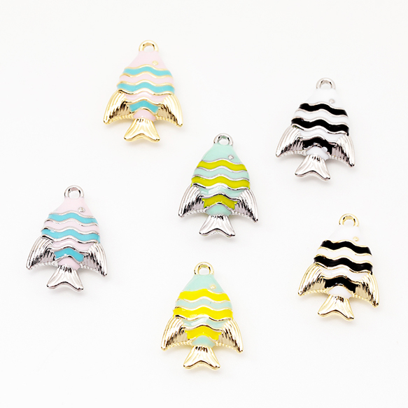 エポチャーム ストライプ 縞々 さかな 熱帯魚 海 マリンチャーム メタルチャーム 約12×17mm(2ヶ)
