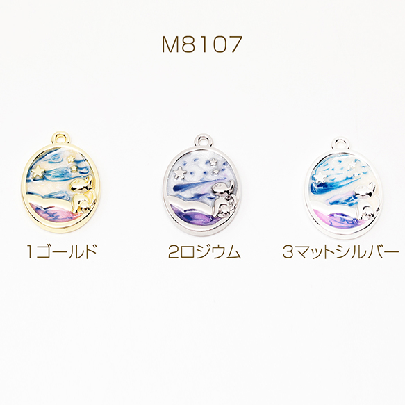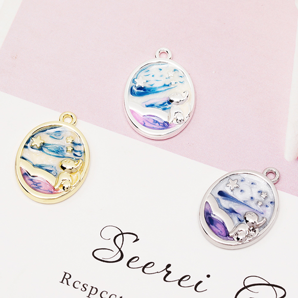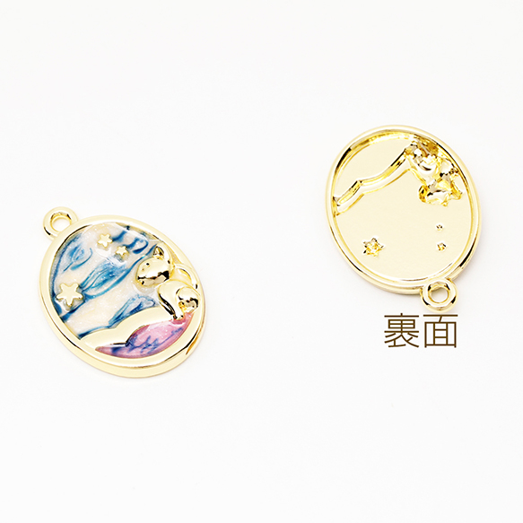 エポチャーム オーバル 星空 ビーチ 海辺 海岸 宇宙 コスモ 惑星 メタルチャーム 約16×22mm(2ヶ)