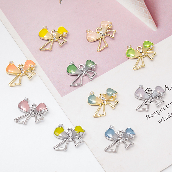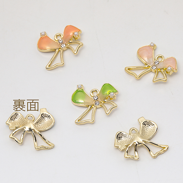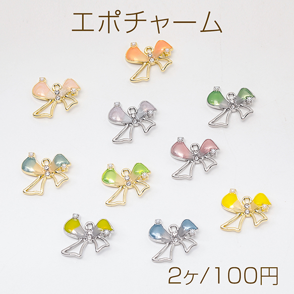エポチャーム りぼん グラデーションカラー ストーン付き リボンチャーム 約15×17mm(2ヶ)