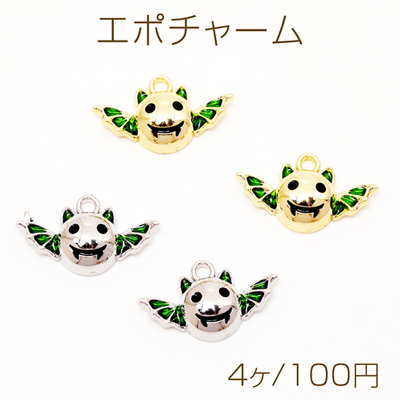 エポチャーム コウモリ 小悪魔 デビル オバケ ハロウィン メタルチャーム 約12×21mm(4ヶ)