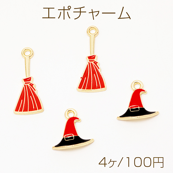 エポチャーム ホウキ 魔女の帽子 魔法使い ハロウィン メタルチャーム 全2種(4ヶ)
