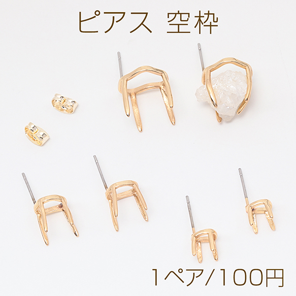 ピアス 空枠 石座 台座 ストーンセッティング 爪付き ピアス金具 全3種(1ペア)