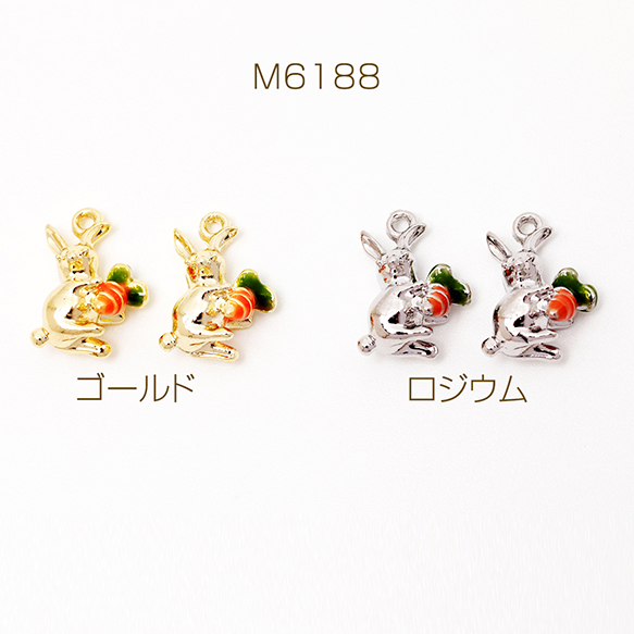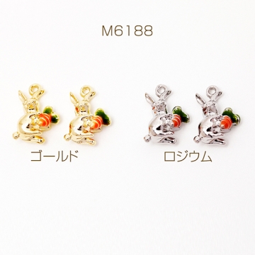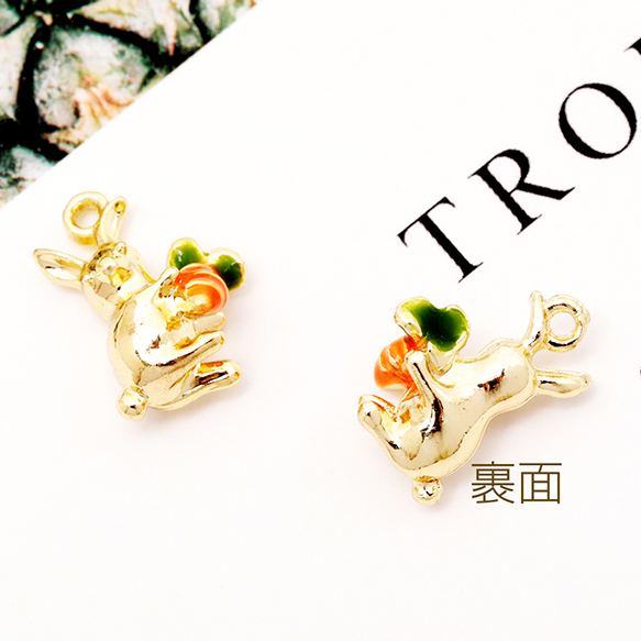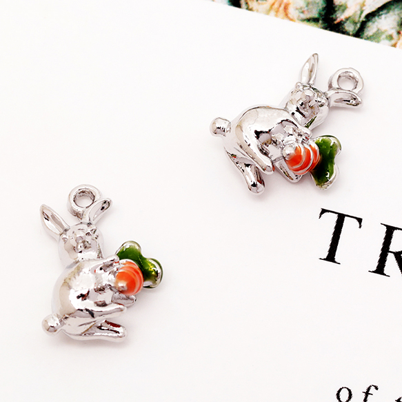 エポチャーム うさぎ 兎 バニー ラビット にんじん 立体 動物 アニマル メタルチャーム 約10×14mm(2ヶ)
