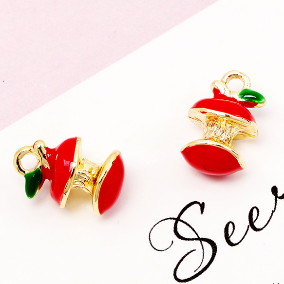 エポチャーム りんご アップル かじった林檎 立体 果物 フルーツ ミニチュア メタルチャーム 約8×13mm(2ヶ)