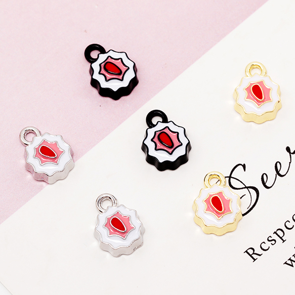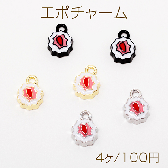 エポチャーム イラスト風 いちご ケーキ 半面 スイーツ ミニチュア メタルチャーム 約9×12mm(4ヶ)