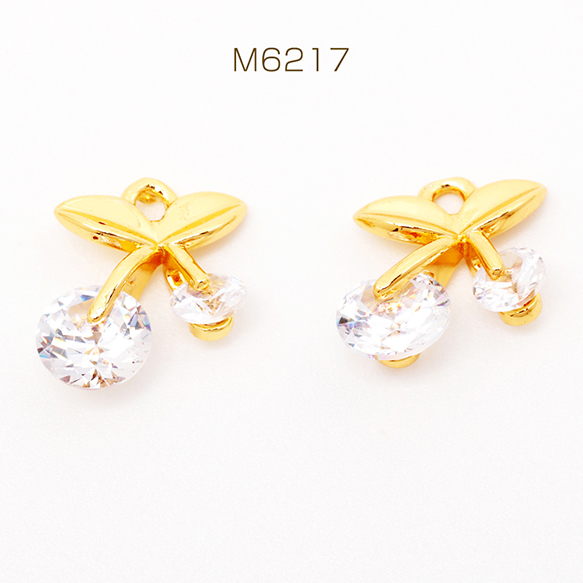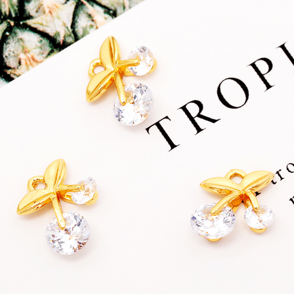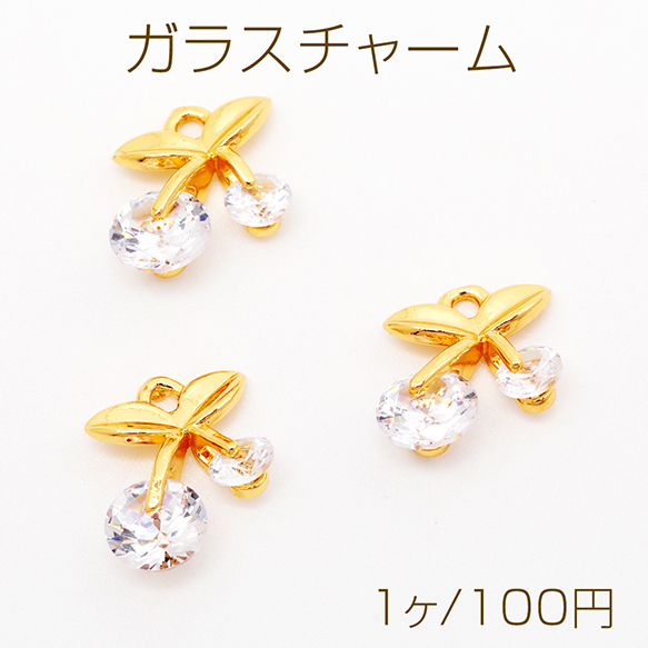 ガラスチャーム さくらんぼ チェリー ストーン付き 果物 フルーツ メタルチャーム 約10×12mm(1ヶ)