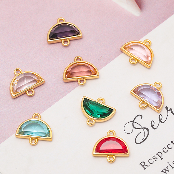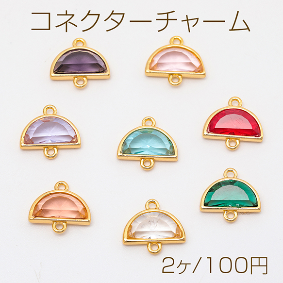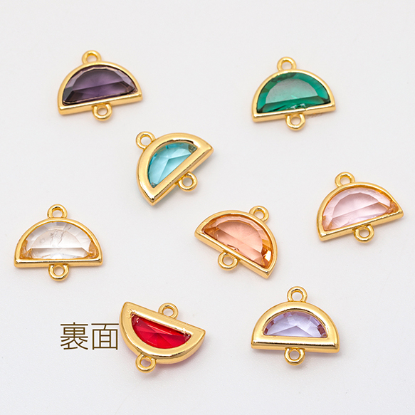 コネクターチャーム 半月型 ガラスチャーム 連結パーツ 接続金具 メタルチャーム 約11×12mm(2ヶ)