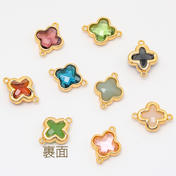 コネクターチャーム フラワー ガラスチャーム 連結パーツ 接続金具 メタルチャーム 約12×16mm(2ヶ)