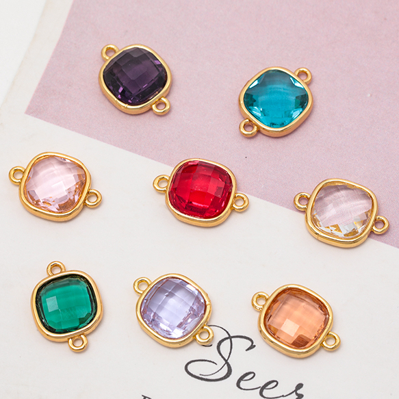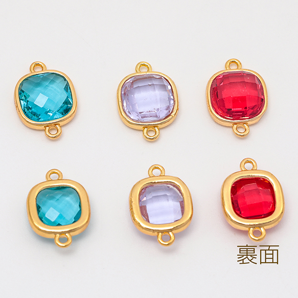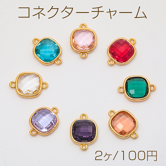 コネクターチャーム スクエア 正方形 ガラスチャーム 連結パーツ 接続金具 メタルチャーム 約10×14mm(2ヶ)