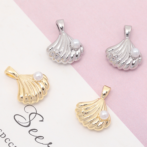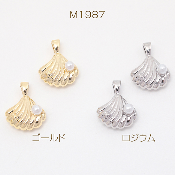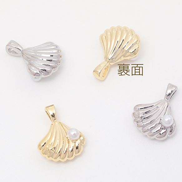 メタルチャーム 貝殻 ホタテ ABSパール付き 海 夏 マリンチャーム 約13×17mm(4ヶ)