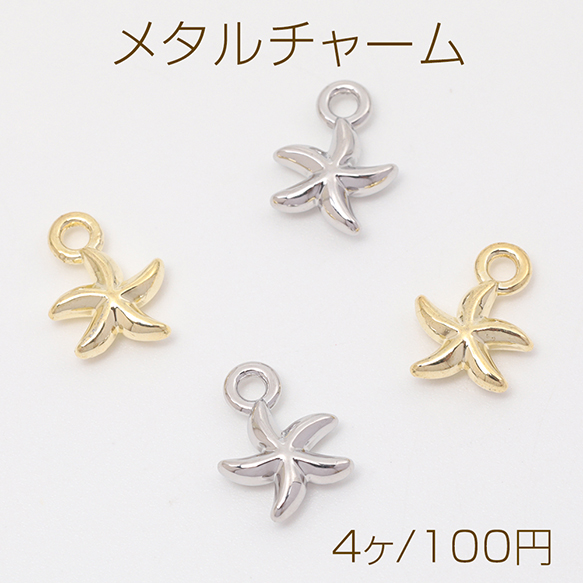 メタルチャーム ヒトデ 模様なし 立体 海 夏 マリンチャーム 約8×11mm(4ヶ)