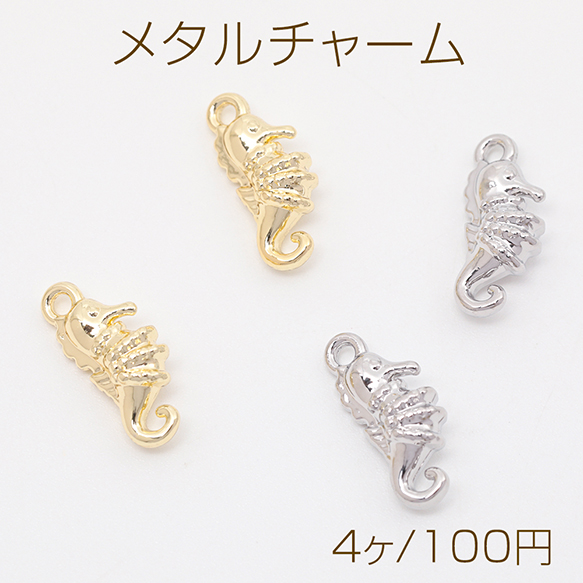 メタルチャーム タツノオトシゴ さかな 立体 海 夏 マリンチャーム 約6×15mm(4ヶ)