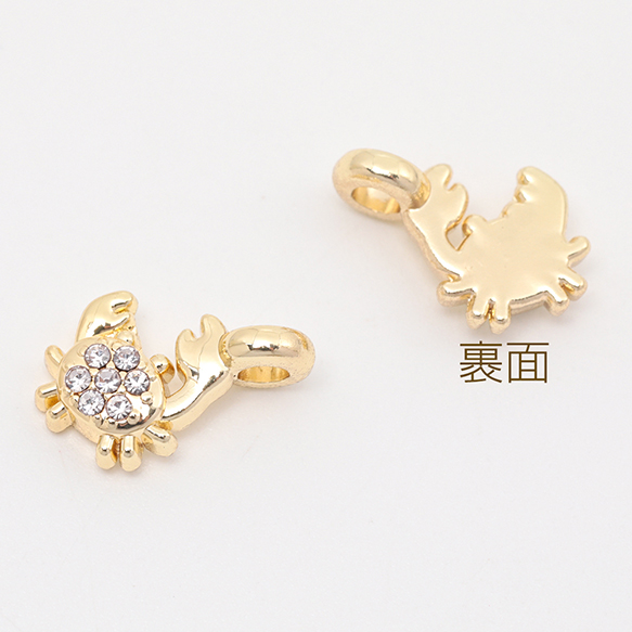 メタルチャーム カニ 蟹 立体 ストーン付き 海 マリンチャーム 約8×13mm(4ヶ)