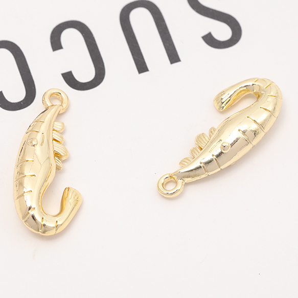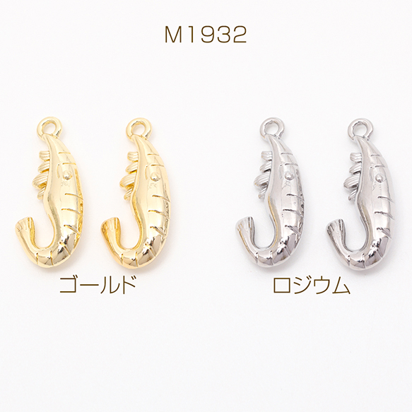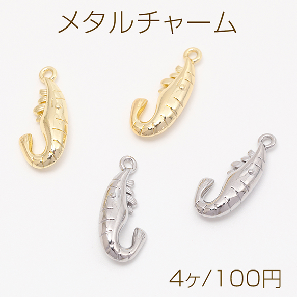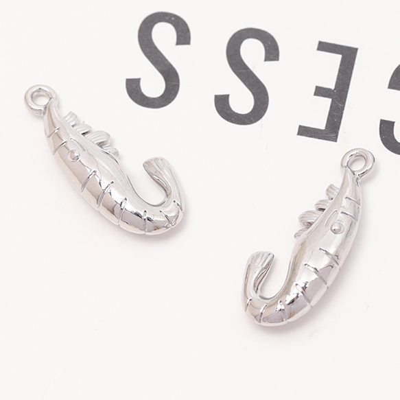 メタルチャーム エビ 海老 ロブスター 立体 海 マリンチャーム 約9×20mm(4ヶ)