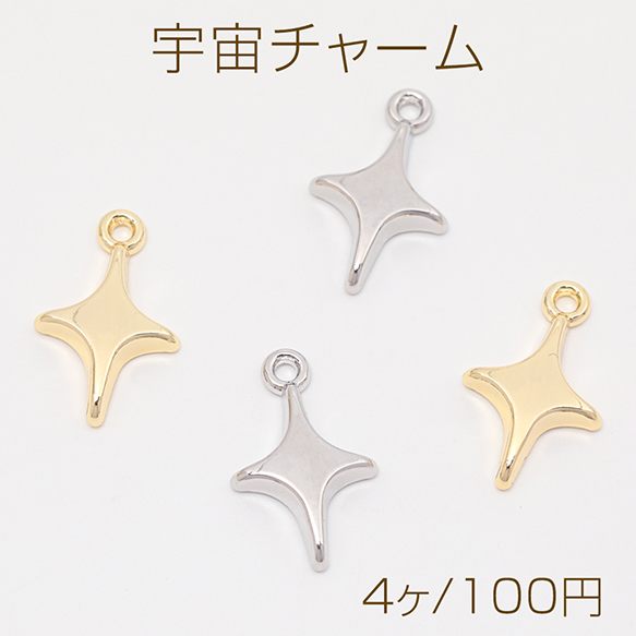 宇宙チャーム 月 ムーン 三日月 夜空 宇宙 コスモ 神秘的 ストーン付き メタルチャーム 約11×19mm(4ヶ)