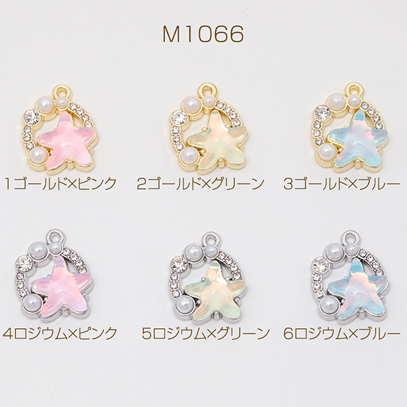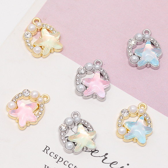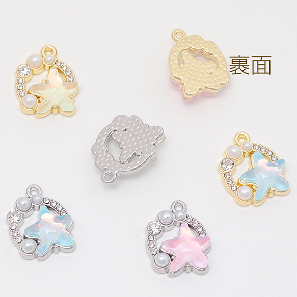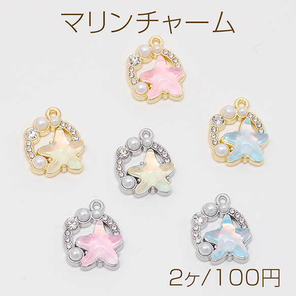 マリンチャーム ヒトデ 海 キラキラ ABSパール ラインストーン付き メタルチャーム 約13×17mm(2ヶ)