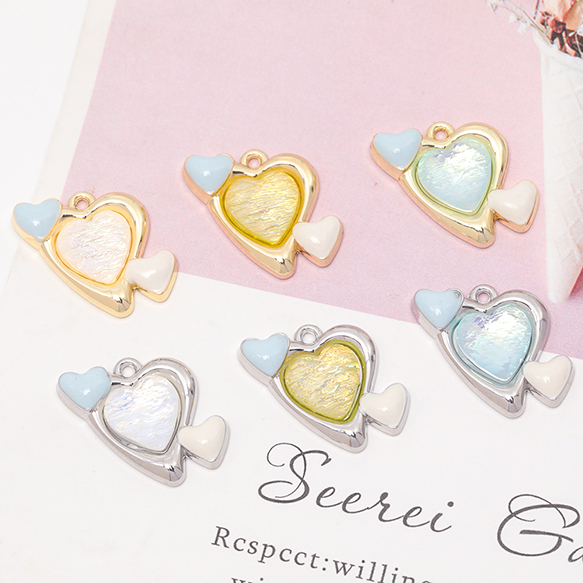 メタルハートチャーム ハート ブルー エポ カラフル 半面 メタルチャーム 約18×20mm(2ヶ)