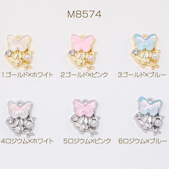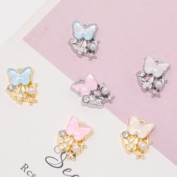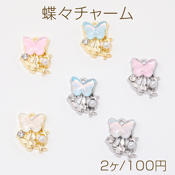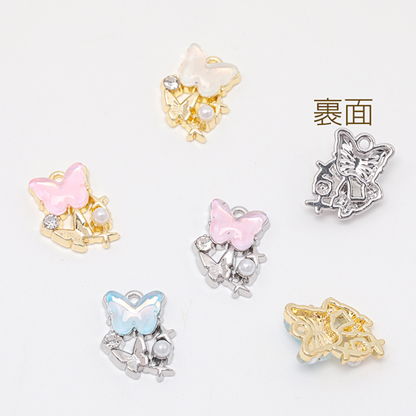 蝶々チャーム ちょうちょ ABSパール ストーン付き 半面 宇宙チャーム メタルチャーム 約11×14mm(2ヶ)