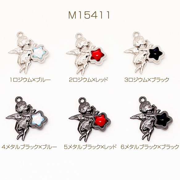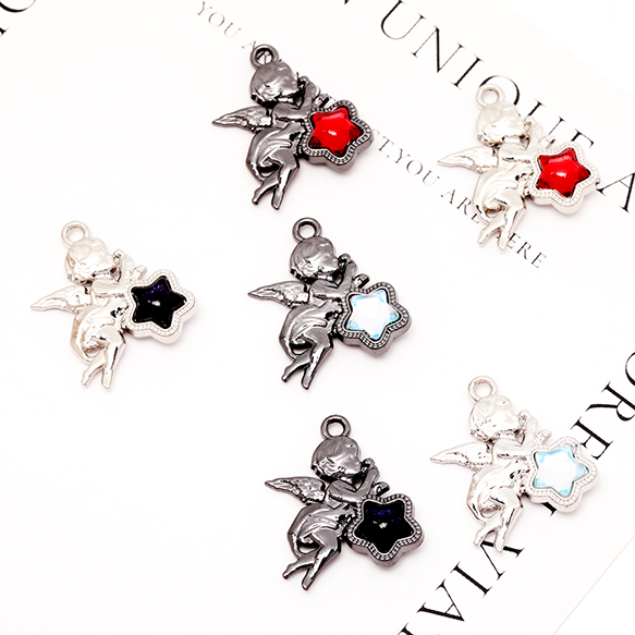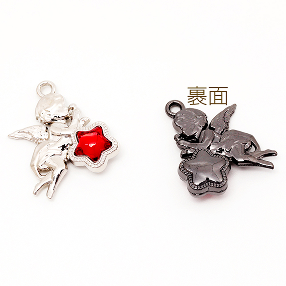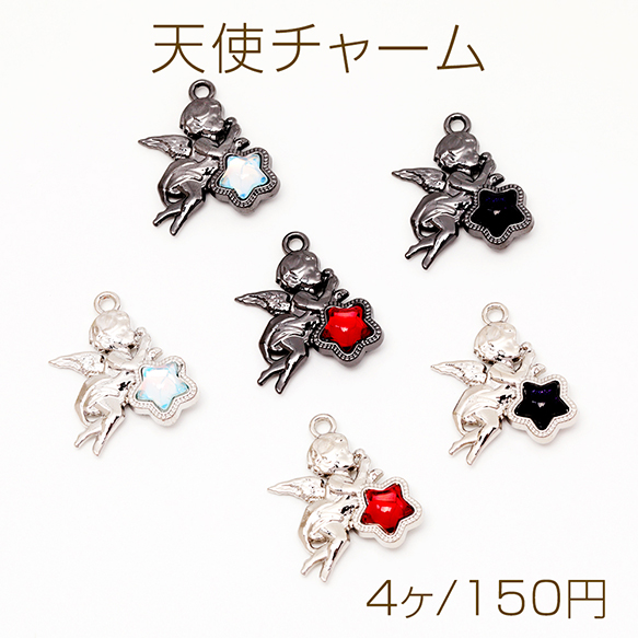 天使チャーム キューピット 星 スター ストーン付き ダークスイート メタルチャーム 約25×27mm(4ヶ)