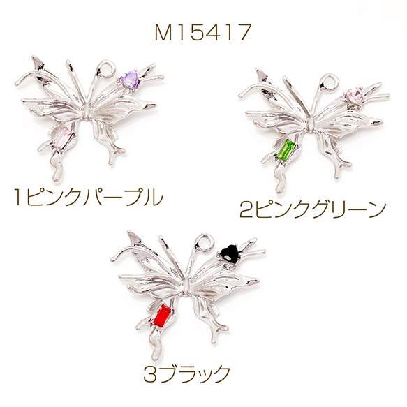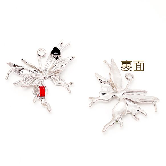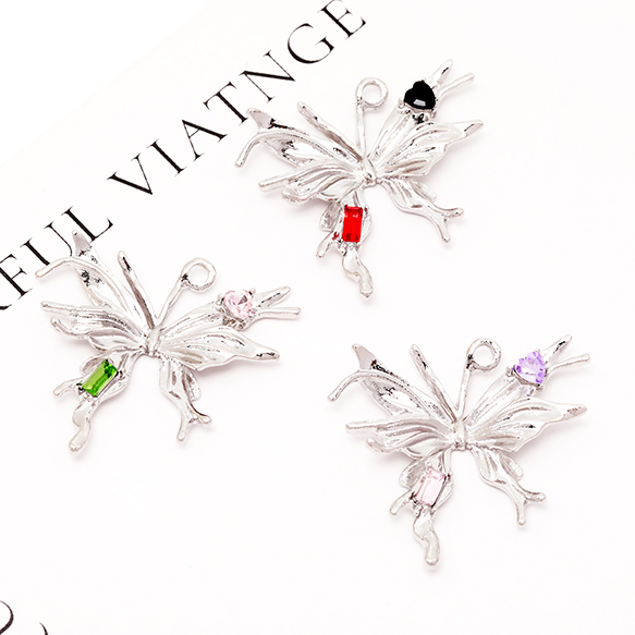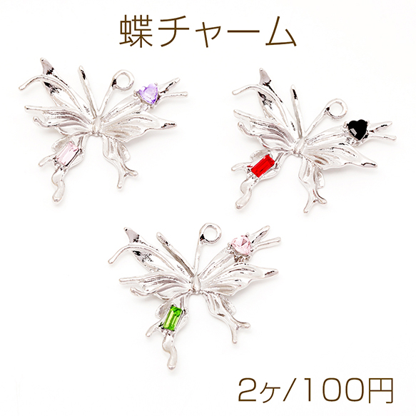 蝶チャーム ちょうちょ バタフライ ストーン付き ダークスイート メタルチャーム 約33×37mm(2ヶ)