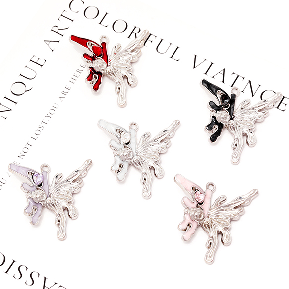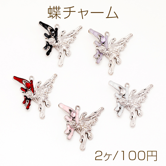 蝶チャーム ちょうちょ 片羽 バタフライ ストーン付き ダークスイート エポチャーム メタルチャーム 約33×35mm(2ヶ)