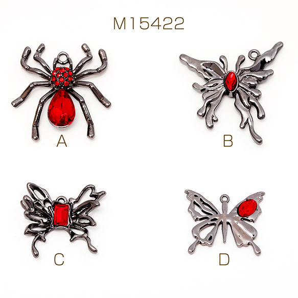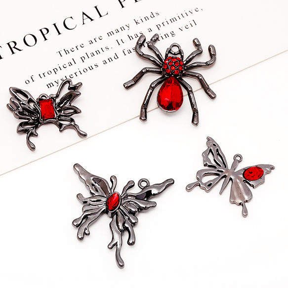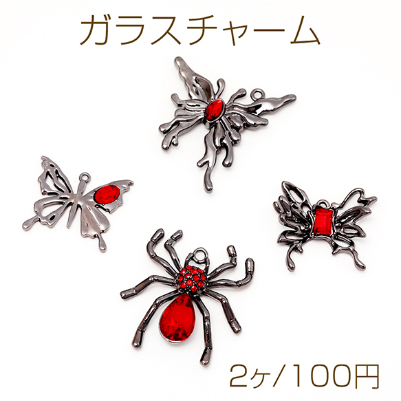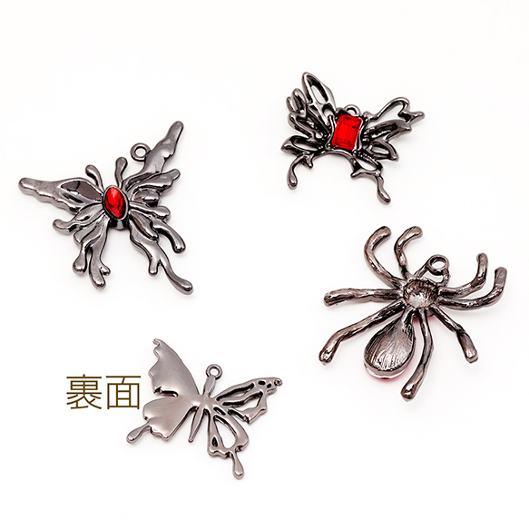 ガラスチャーム 蝶々 クモ ストーン付き ダークスイート 蝶チャーム 蜘蛛チャーム メタルチャーム 全4種(2ヶ)