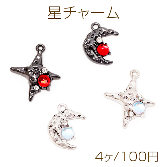 宇宙チャーム スター 星 月 ムーン 三日月 宇宙 ストーン付き ダークスイート メタルチャーム 全4種(4ヶ)
