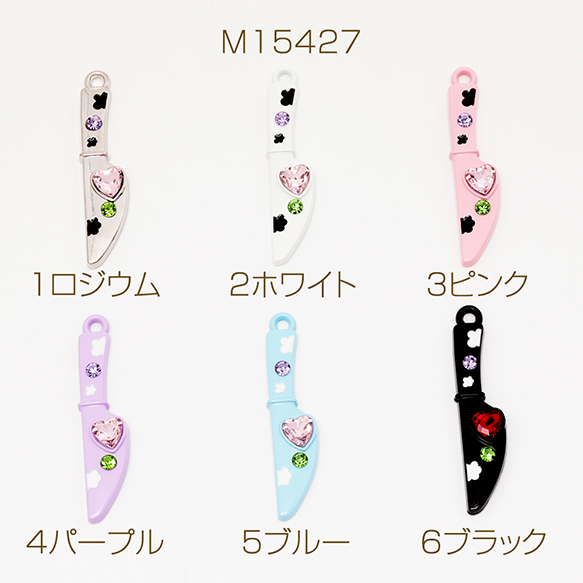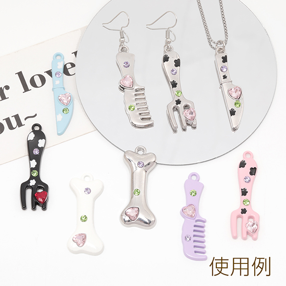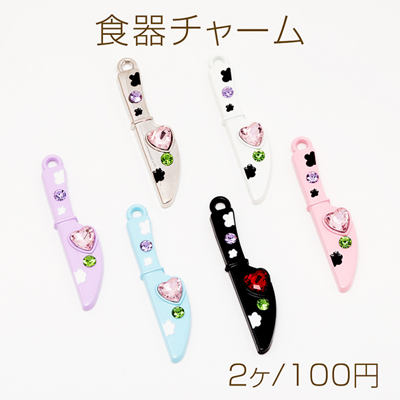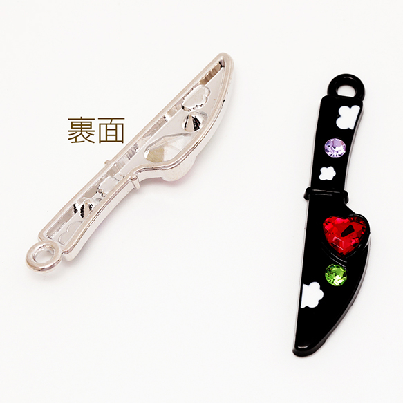 食器チャーム ナイフ カトラリー ストーン付き ダークスイート ミニチュア メタルチャーム 約9×44mm(2ヶ)