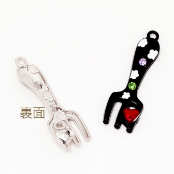 食器チャーム フォーク カトラリー ストーン付き ダークスイート ミニチュア メタルチャーム 約14×45mm(2ヶ)