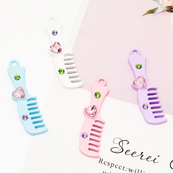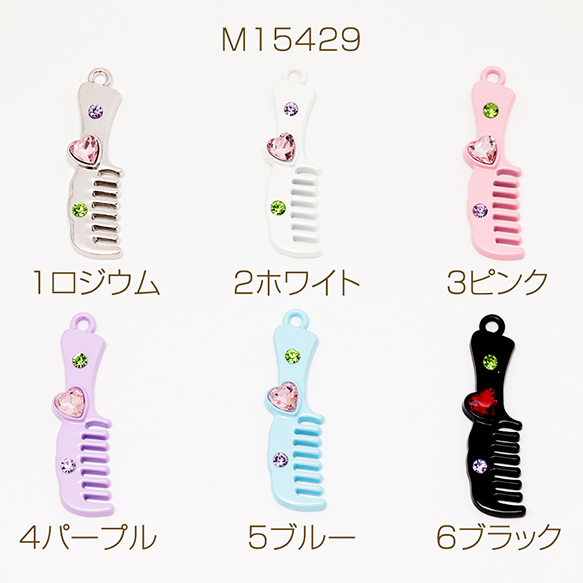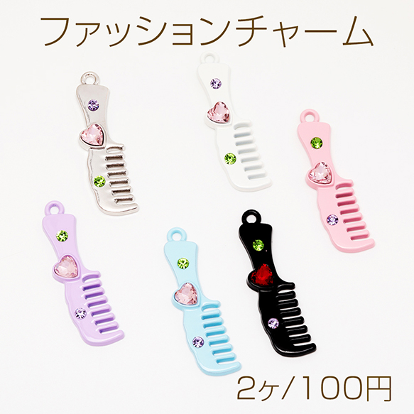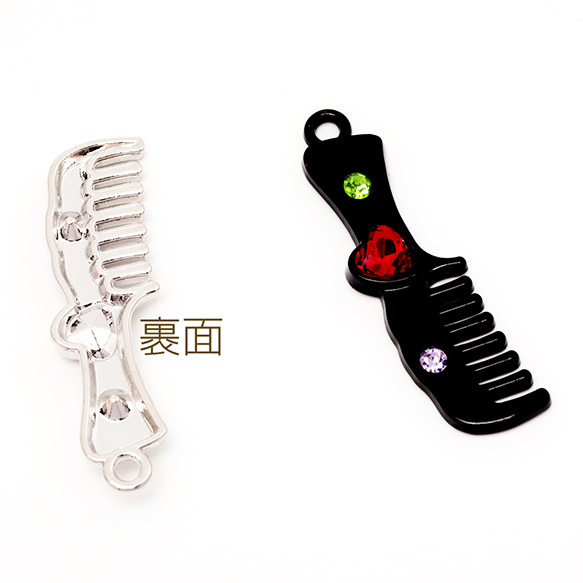 ファッションチャーム クシ コーム ブラシ ストーン付き ダークスイート ミニチュア メタルチャーム 約12×44mm(2ヶ)