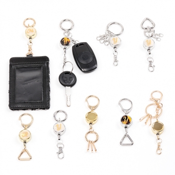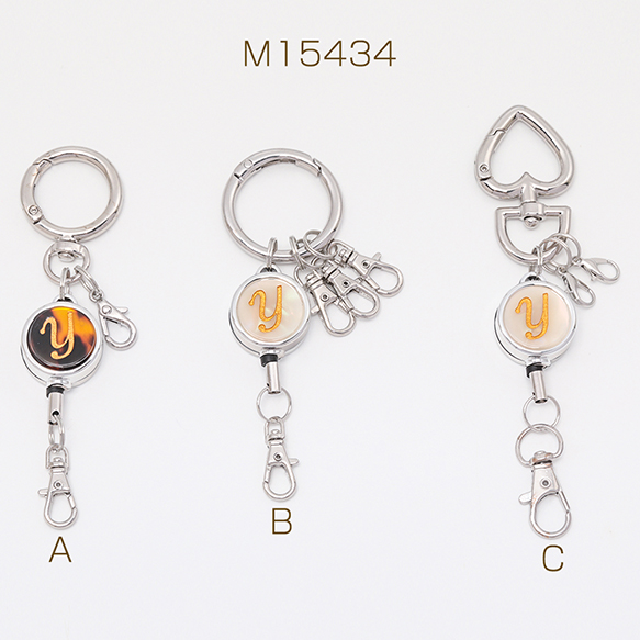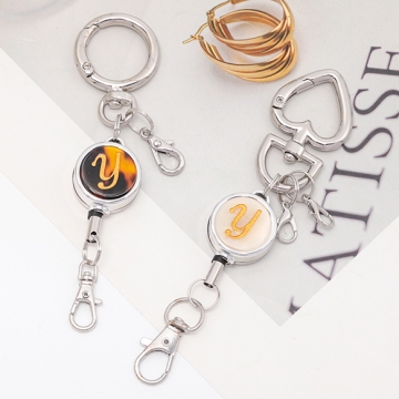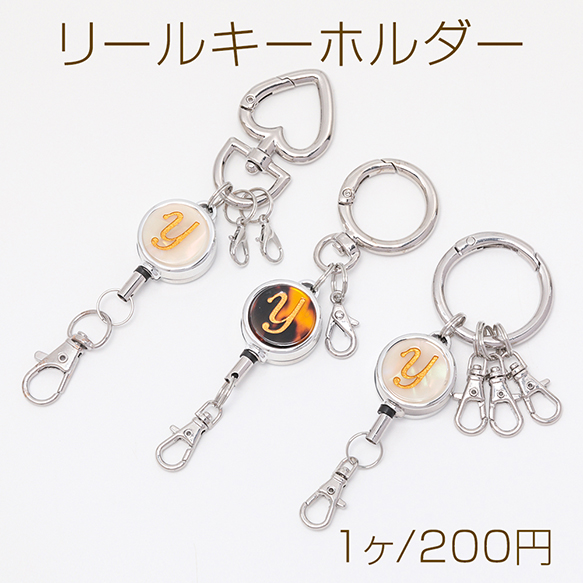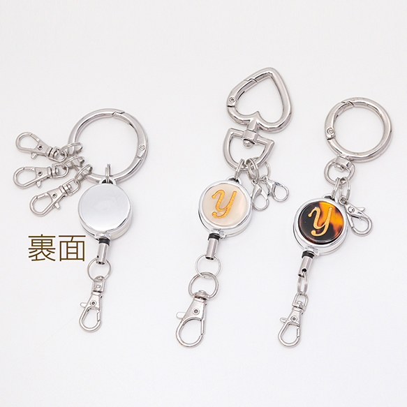 リールキーホルダー 伸縮 イニシャル刻印プレート付き シェル調 リールストラップ 全3種(1ヶ)