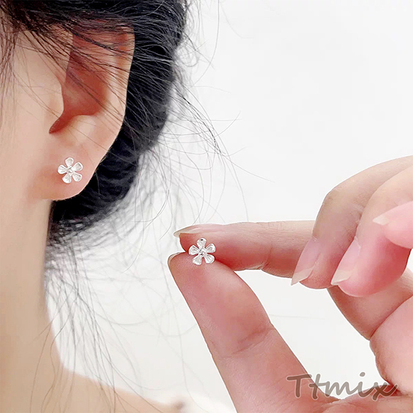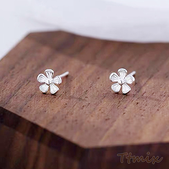 デザインピアス フラワー お花 ミニ シンプル ワンポイントピアス メタルピアス 約6.5mm(1ペア)