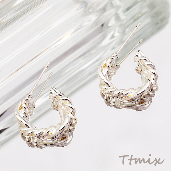デザインピアス ツイスト C型 華やか メタルピアス 約4.5×18mm(1ペア)