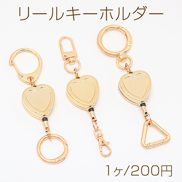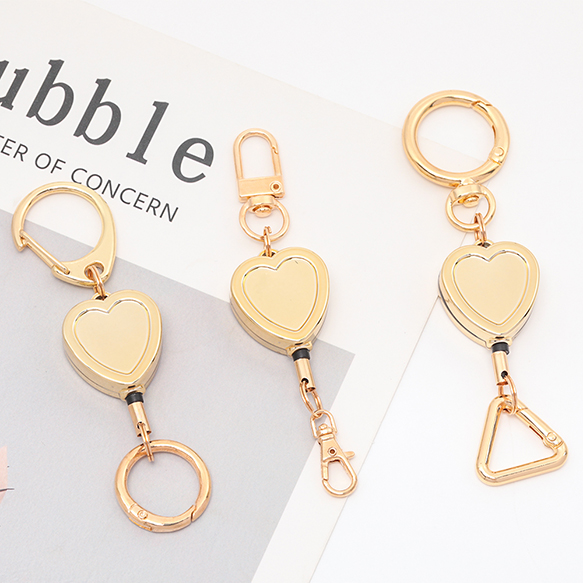 リールキーホルダー 伸縮 ハート型 オリジナル キーホルダー リールストラップ 全3種(1ヶ)